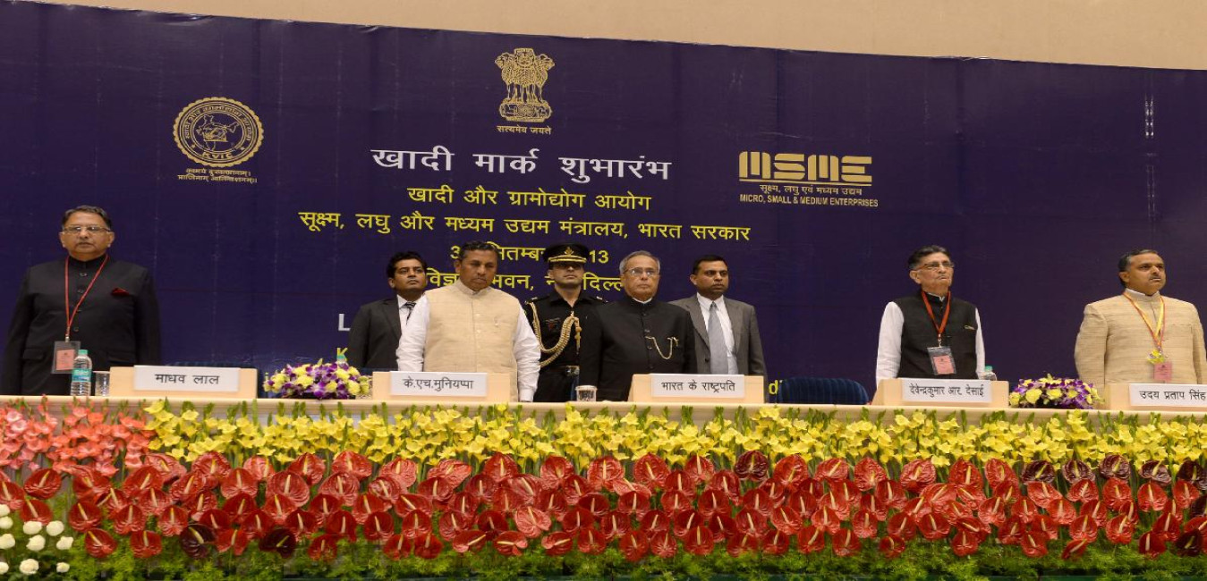 The President of India, Shri Pranab Mukherjee launching the Khadi Mark & Logo at a programme at Vigyan Bhavan in New Delhi on Sep 30, 2013