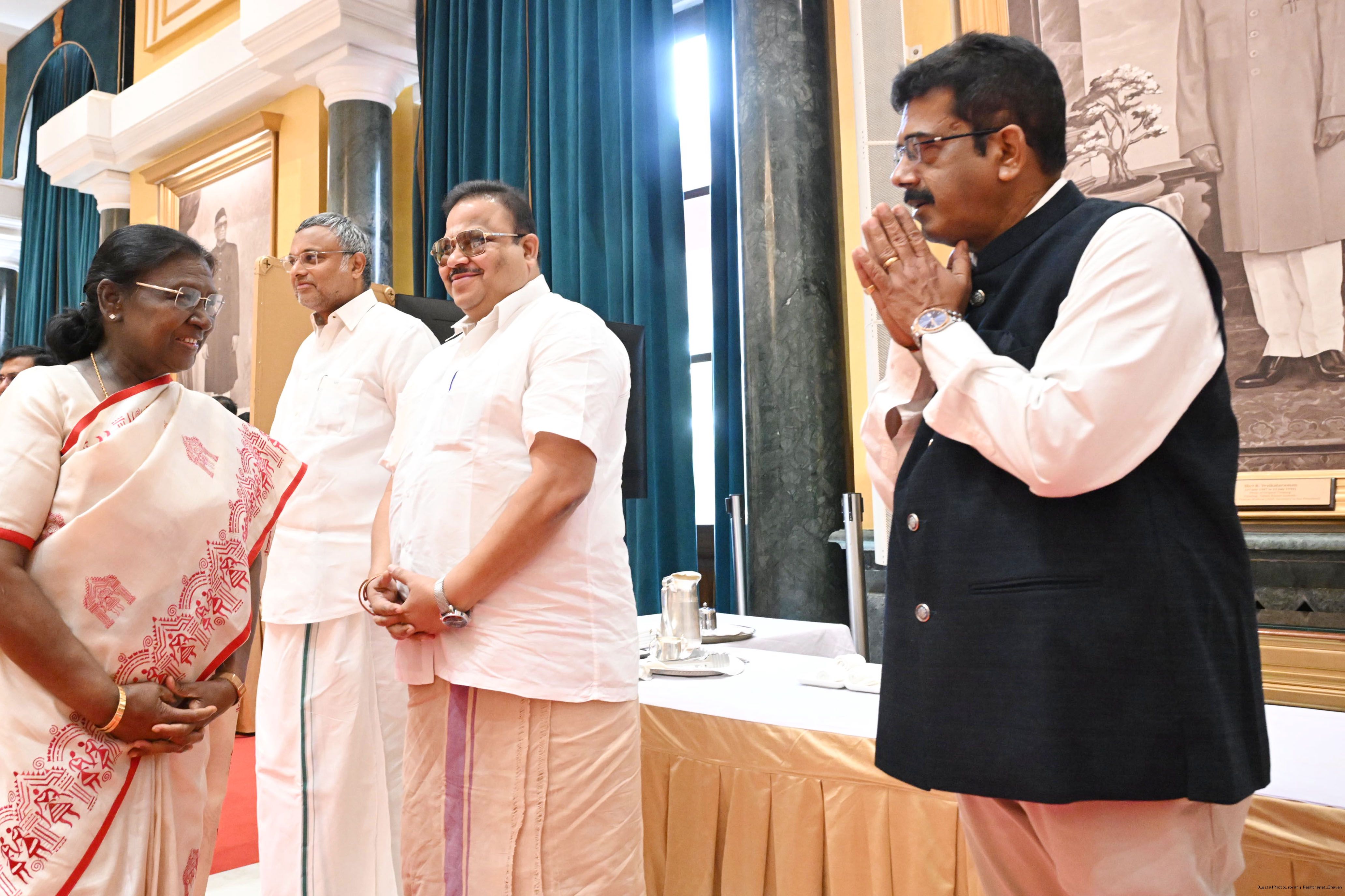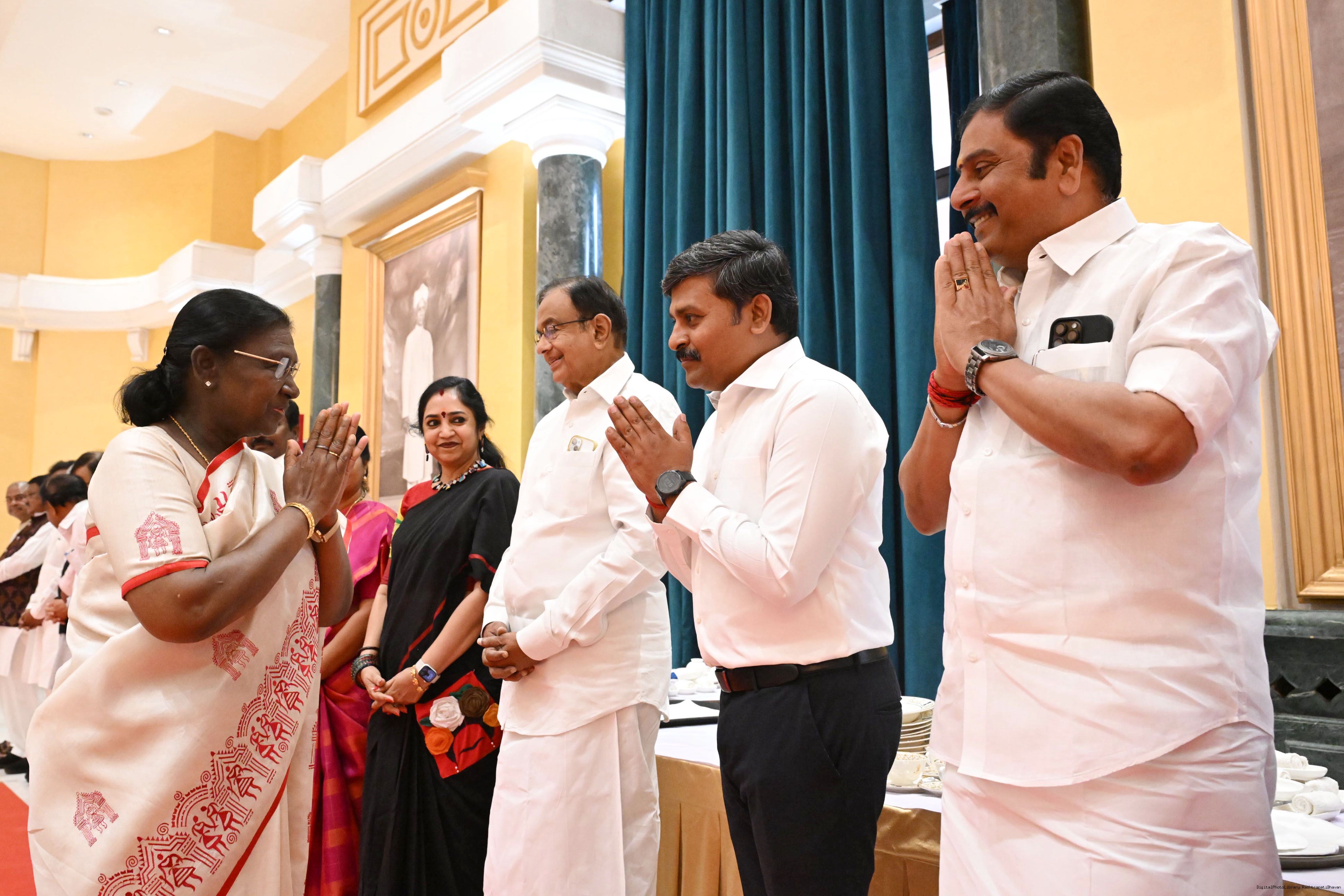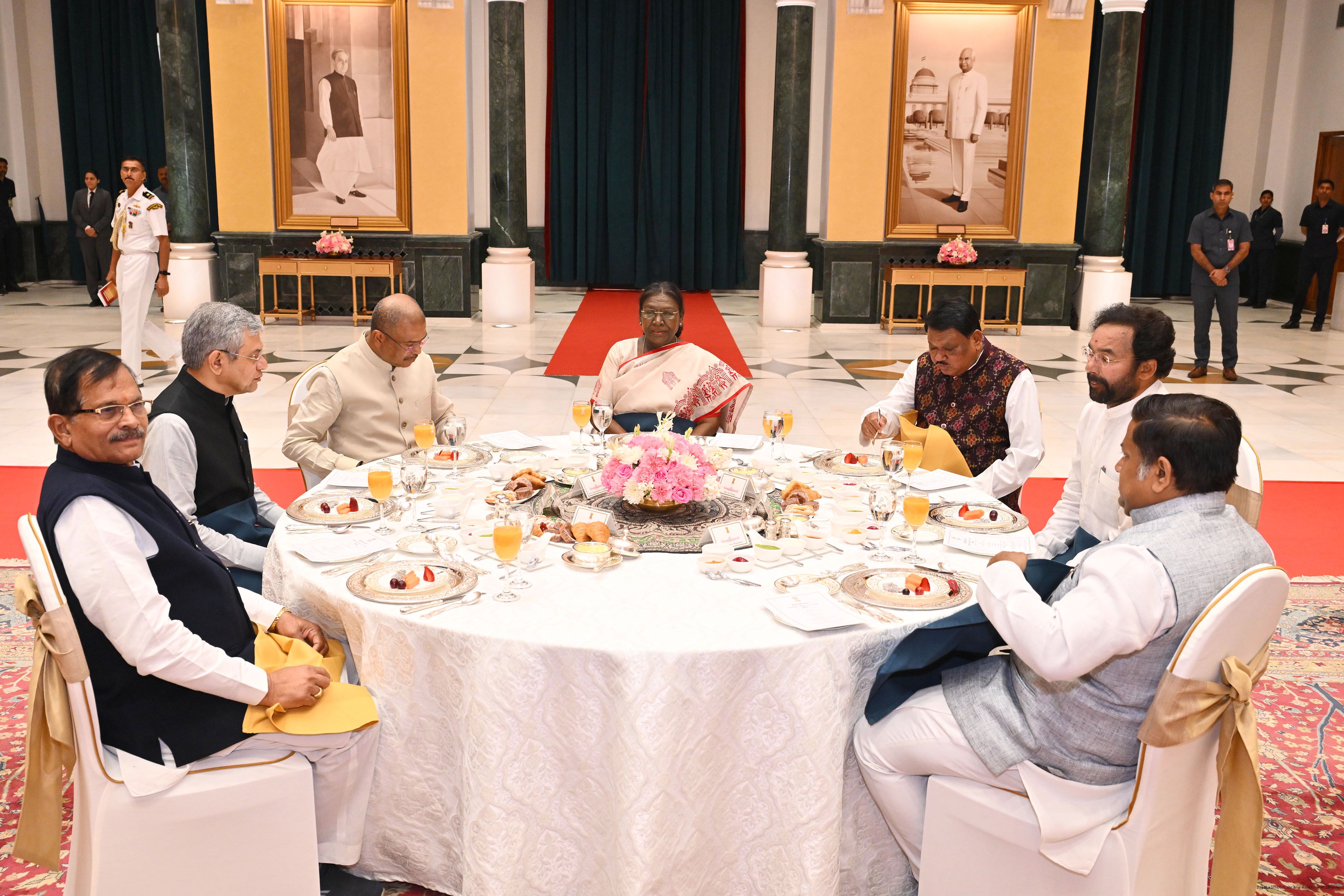 The President of India, Smt Droupadi Murmu hosted Members of Parliament from West Bengal, Tamil Nadu, Telangana, Odisha, Goa, Puducherry, Andaman Nicobar Islands, Dadra Nagar Haveli and Daman Diu and Lakshadweep for breakfast at Rashtrapati Bhavan Cultural Centre on March 16, 2026