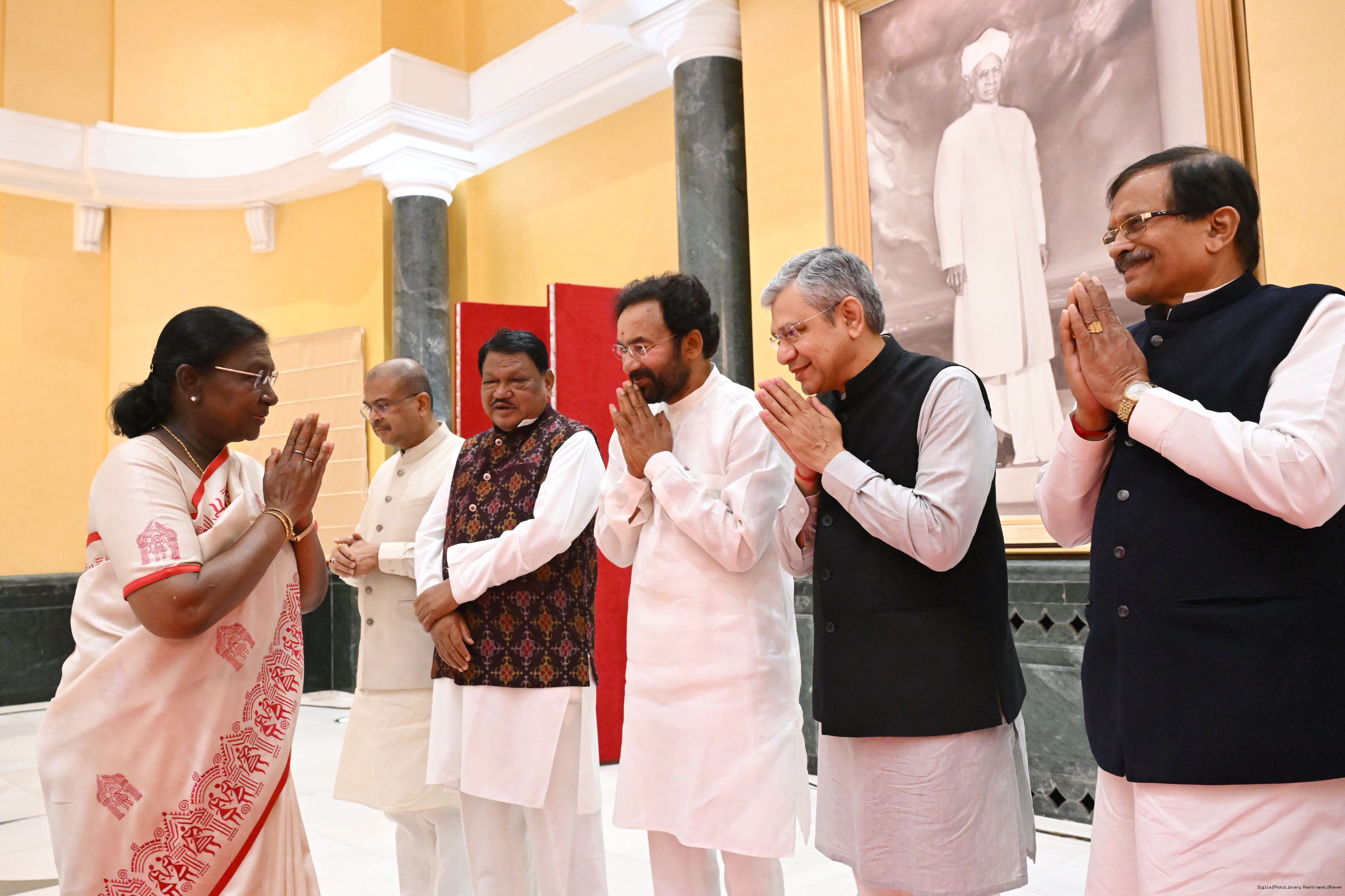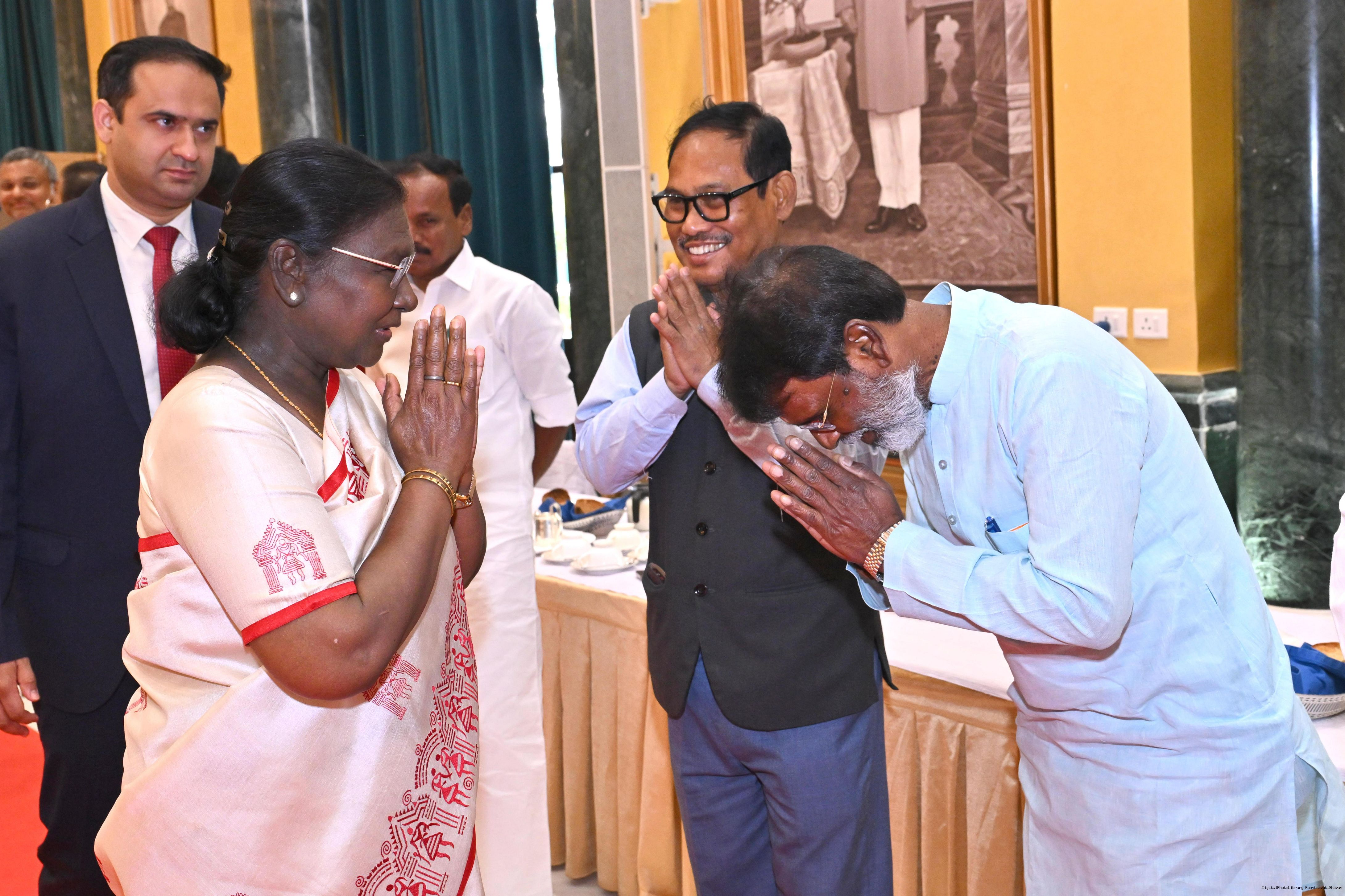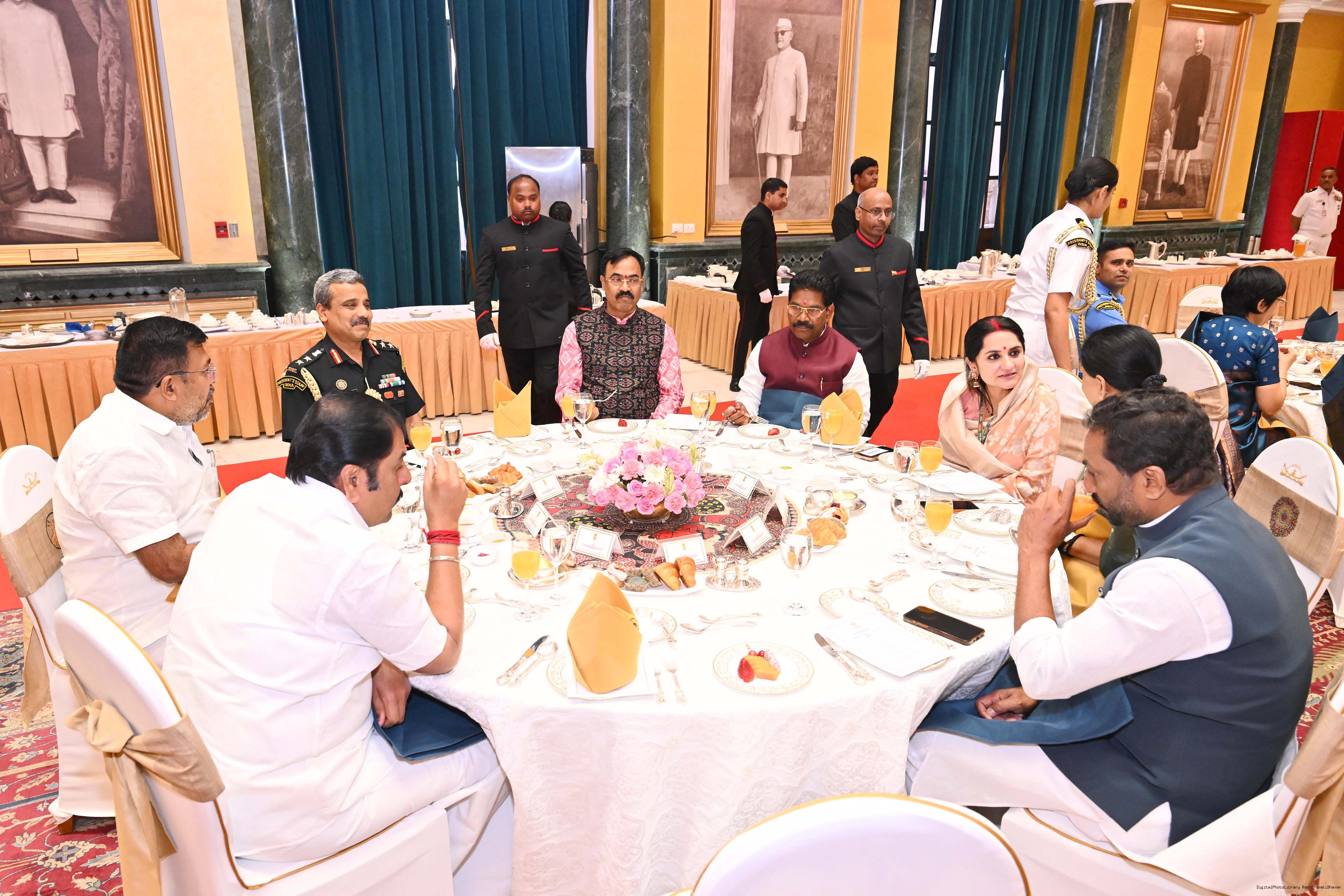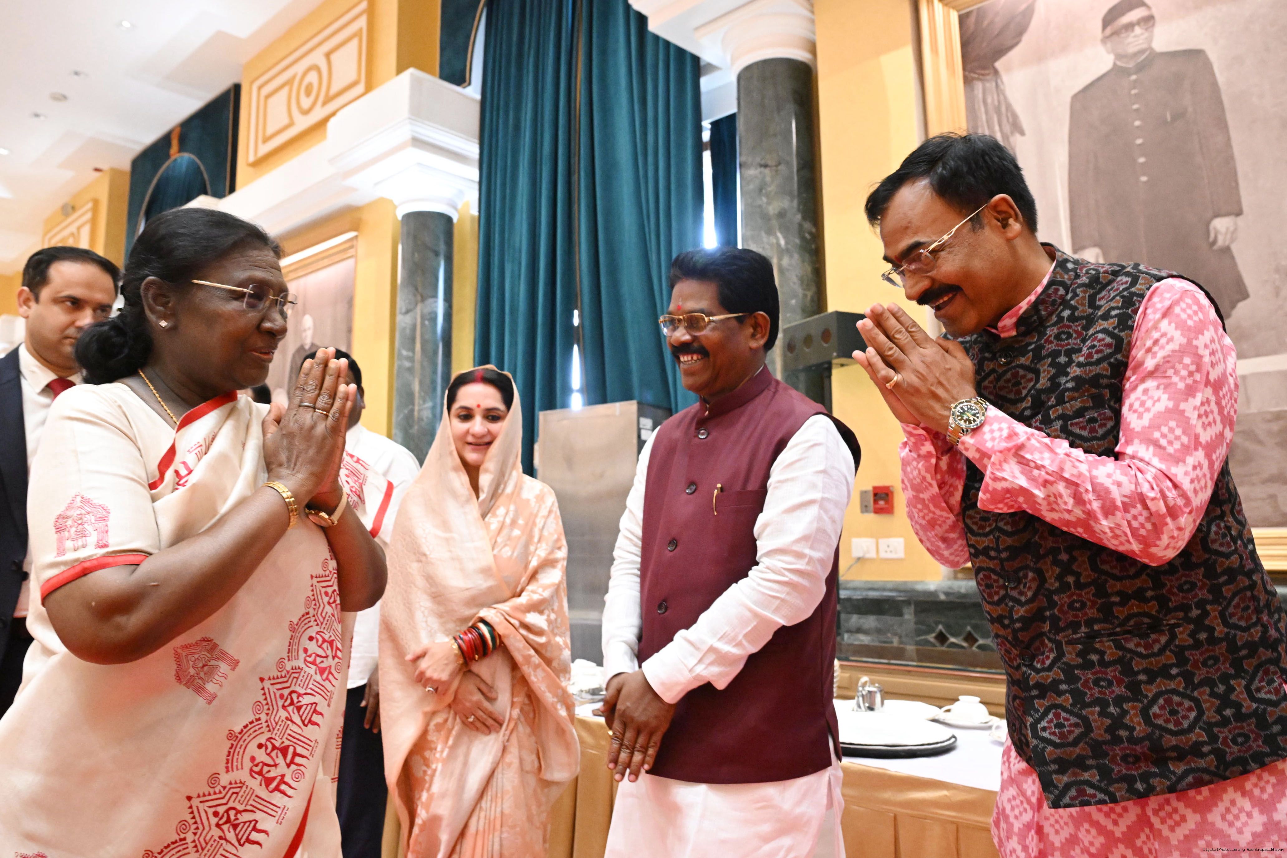 The President of India, Smt Droupadi Murmu hosted Members of Parliament from West Bengal, Tamil Nadu, Telangana, Odisha, Goa, Puducherry, Andaman Nicobar Islands, Dadra Nagar Haveli and Daman Diu and Lakshadweep for breakfast at Rashtrapati Bhavan Cultural Centre on March 16, 2026