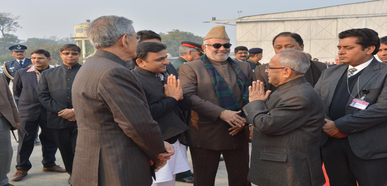 The President of India, Shri Pranab Mukherjee Arrival at Lucknow (Amausi Airport) on 08 Jan 2013