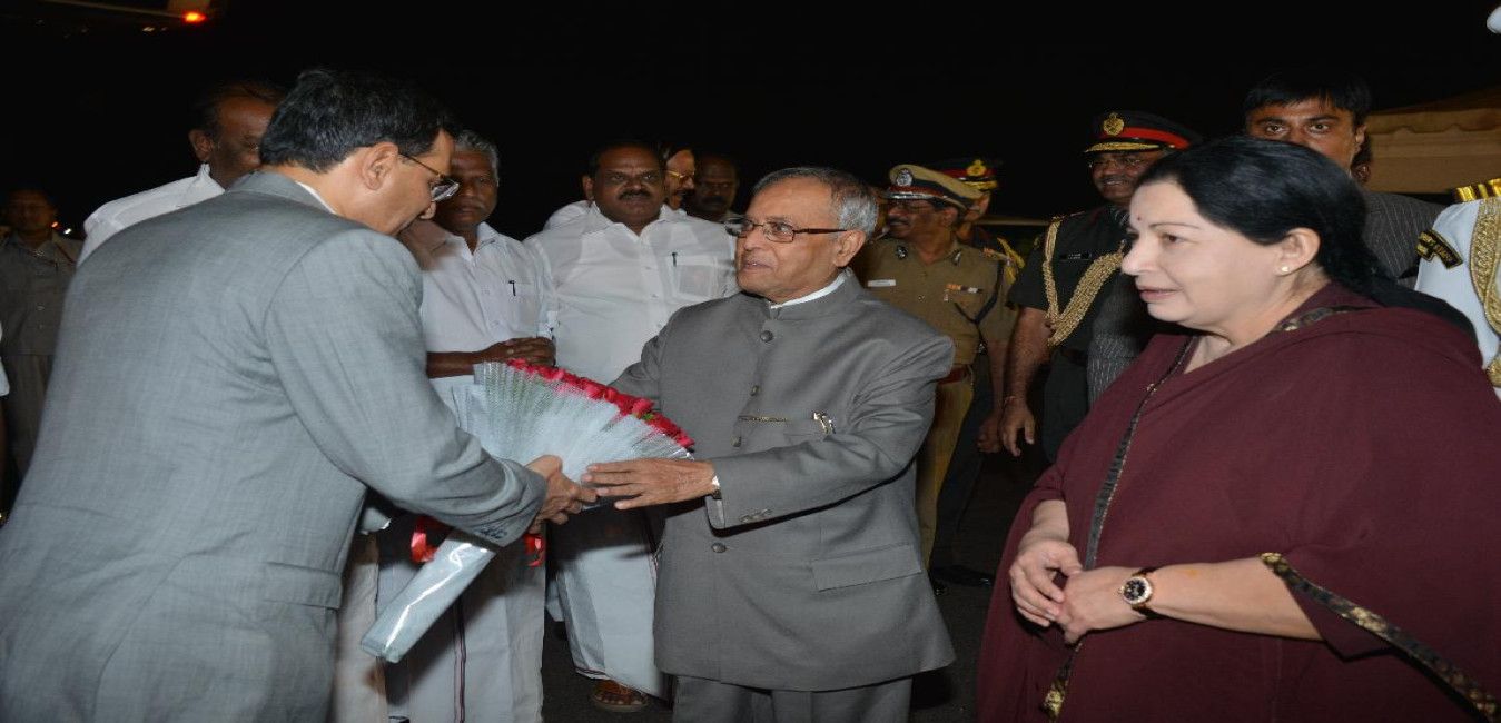 The President of India, Shri Pranab Mukherjee arriving at Chennai Airport on November 30, 2012
