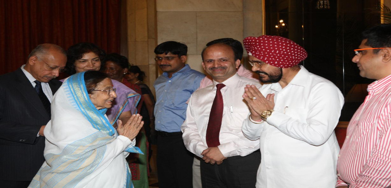 The President of India, Smt Pratibha Devisingh Patil interacting with Shri Virendra Uttamsingh Pawar and others at Rashtrapati Bhavan in New Delhi on July 18, 2012