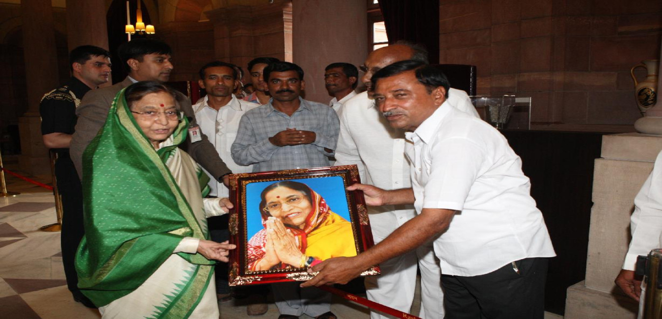 The President of India, Smt Pratibha Devisingh Patil interacting with Shri Pravin Deshmukh and others at Rashtrapati Bhavan in New Delhi on July 10, 2012