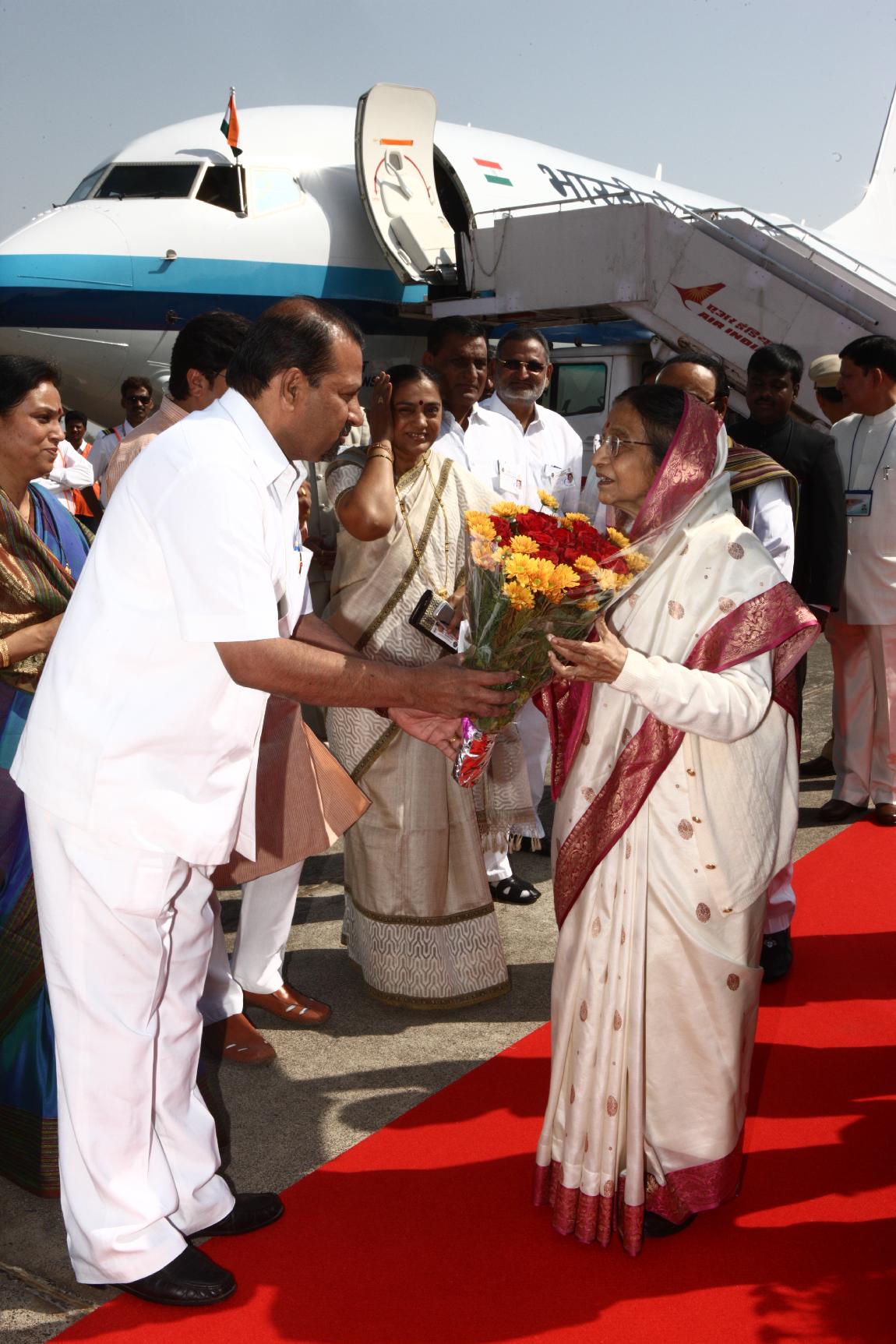 The President of India, Smt Pratibha Devisingh Patil arriving at Nashik (Ozar) Airport in Maharashtra on Feb 24, 2012