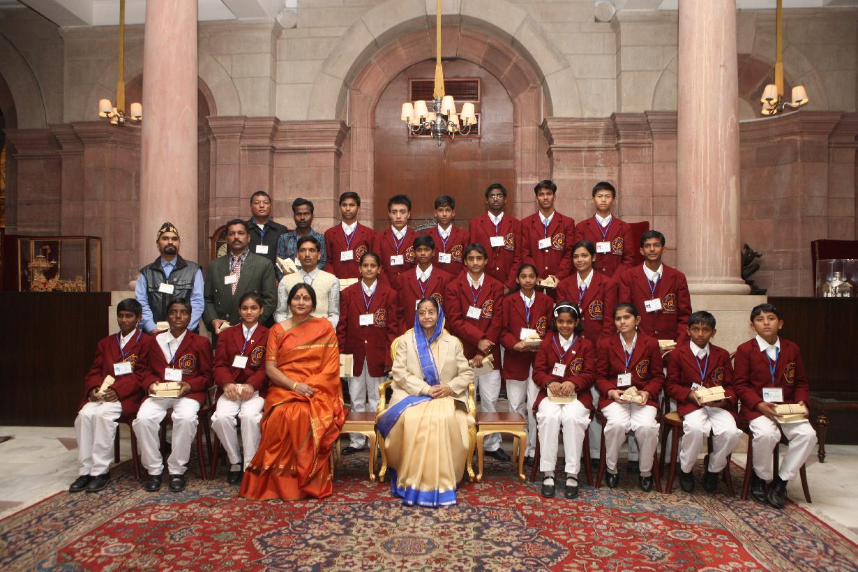 The President of India, Smt Pratibha Devisingh Patil interacting with the Students from Amravati at Rashtrapati Bhavan in New Delhi on Jan 13, 2012