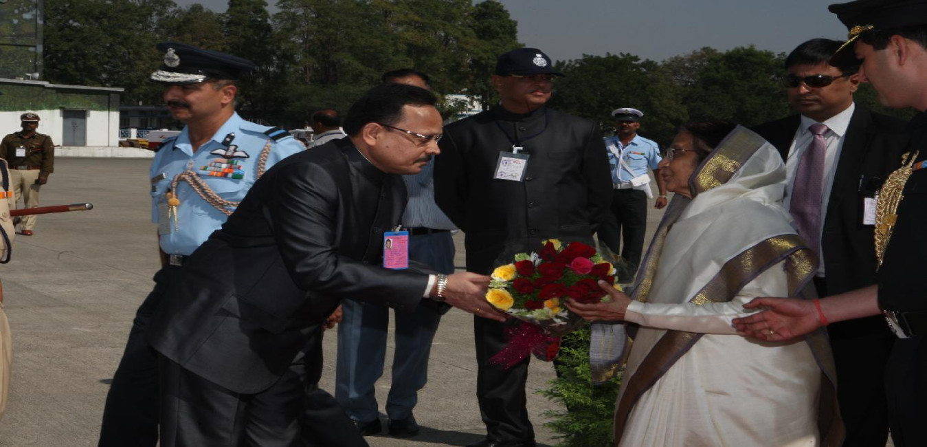 The President of India, Smt Pratibha Patil before departure from Kolkata Airport in West Bengal on Nov 30, 2011