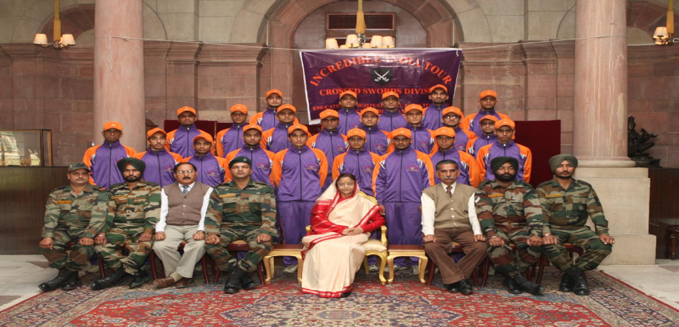 The President of India, Smt Pratibha Patil interacting with the Students from Jammu and Kashmir who attends the Operation Sadbhavana Tour organized by the 20 Punjab Crossed Swords Division at Rashtrapati Bhavan in New Delhi on Nov 08, 2011