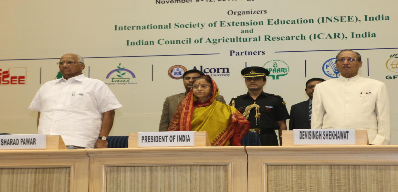 The President of India, Smt Pratibha Patil presenting the INSEE Lifetime Achievement Award in the International Conference on Innovative Approaches for Agricultural Knowledge Management at Vigyan Bhavan in New Delhi on Nov 09, 2011