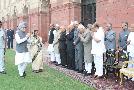 The President of India, Smt Pratibha Devisingh Patil paying homage at the Samadhi of Former Prime Minister of India, Late Smt Indira Gandhi on the occasion of her 27th Death Anniversary at Shakti Sthal in New Delhi on Oct 31, 2011