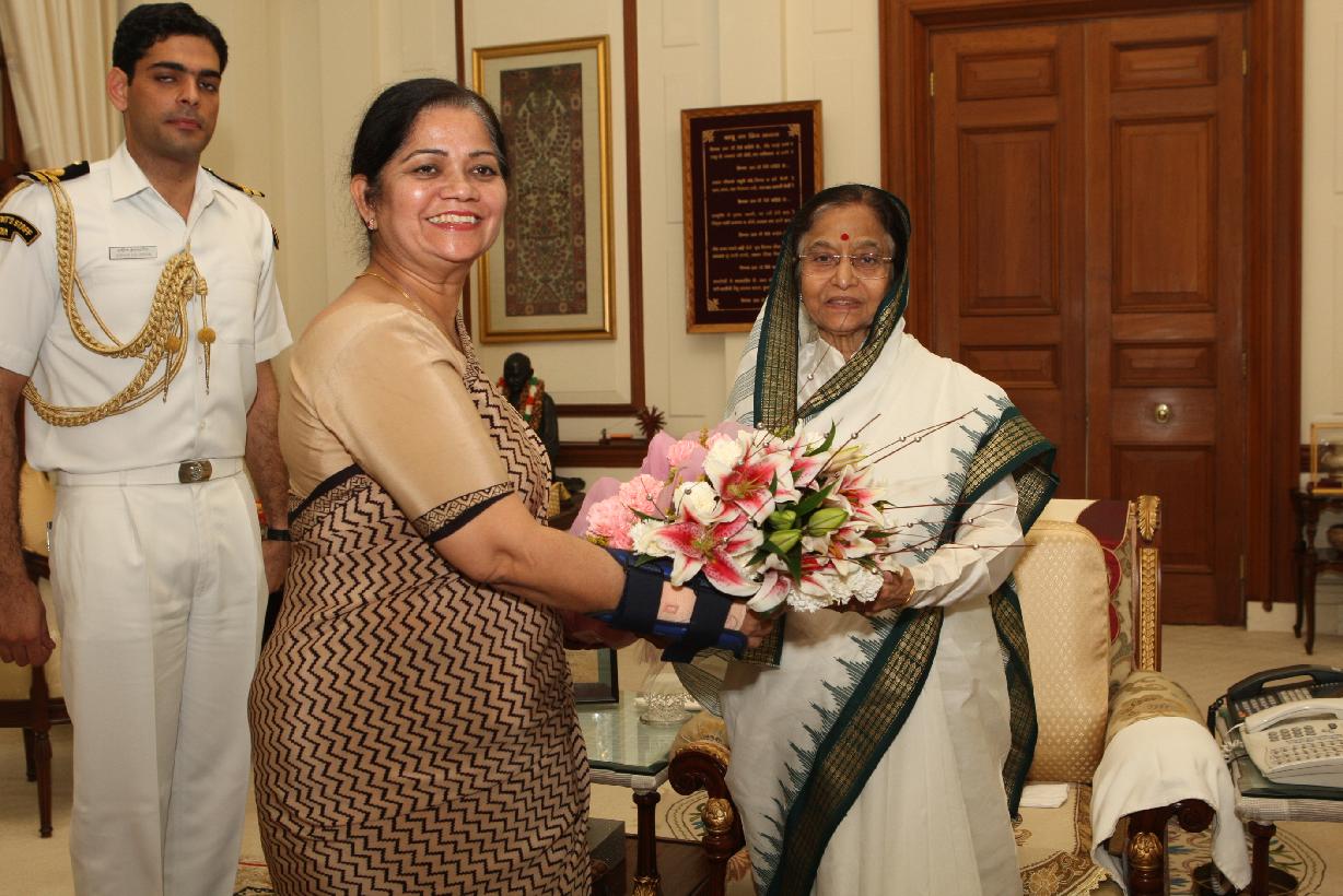 The President of India, Smt Pratibha Devisingh Patil interacting with Lt Gen Arvinder Singh Lamba and Smt Sabinder Lamba at Rashtrapati Bhavan in New Delhi on Oct 21, 2011