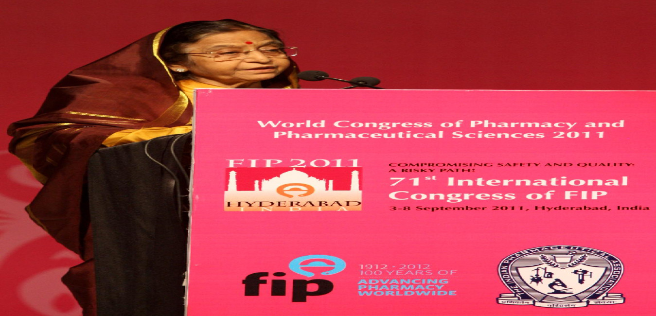 The President of India, Smt Pratibha Devisingh Patil during the Inauguration of the 71st FIP World Congress of Pharmacy and Pharmaceutical Sciences after the release of the Souvenir at Hyderabad in Andhra Pradesh on Sep 04, 2011