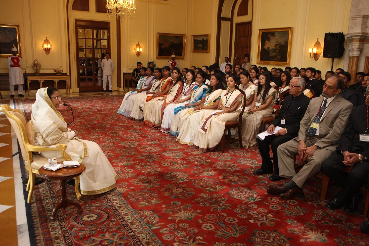 The President of India, Smt Pratibha Devisingh Patil interacting with the Indian Forest Service (IFS) Probationers of the 2010 Batch at Rashtrapati Bhavan in New Delhi on Sep 02, 2011