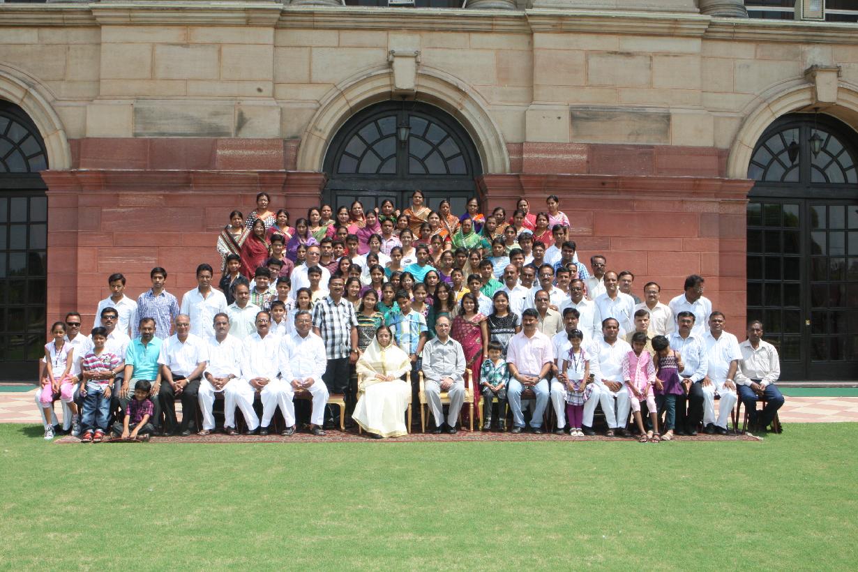 The President of India, Smt Pratibha Devisingh Patil interacting with Smt Devyani Gyaneshwar Kurve and other at Rashtrapati Bhavan in New Delhi on Aug 26, 2011