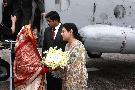 The President of India, Smt Pratibha Devisingh Patil being welcomed by the Governor of Uttarakhand, Smt Margaret Alva and Chief Minister, Shri B C Khanduri at Jolly Grant Airport of Dehradun in Uttarakhand on June 10, 2011