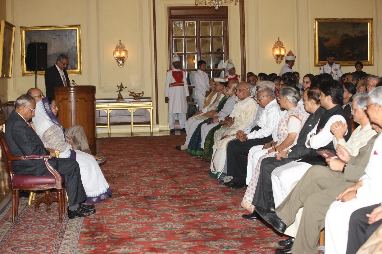 The President of India, Smt Pratibha Devisingh Patil interacting with Shri Gopalsingh Shekhawat and others at Rashtrapati Bhavan in New Delhi on May 27, 2011