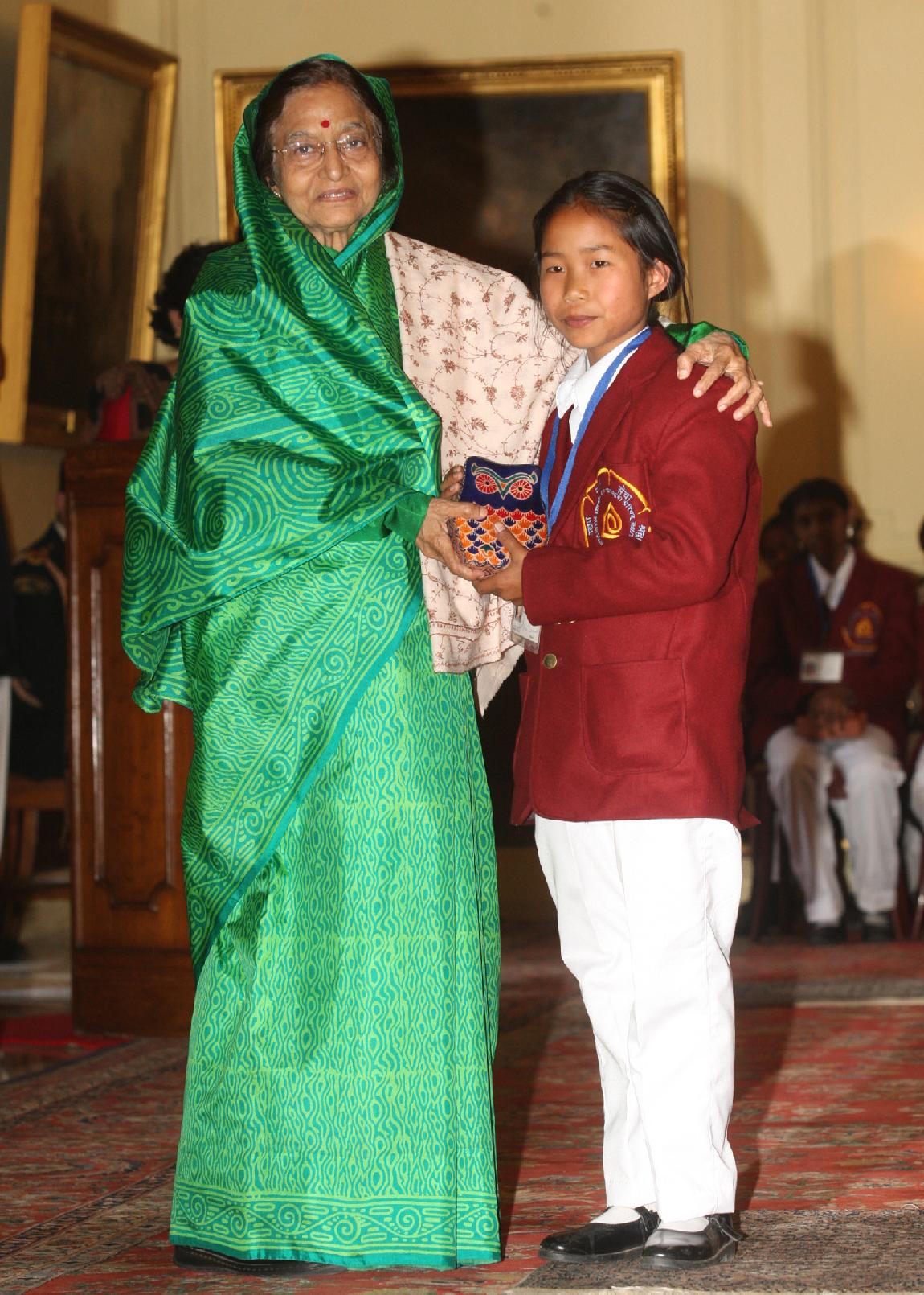 The President of India, Smt Pratibha Devisingh Patil interacting with the Children who won the National Bravery Awards at Rashtrapati Bhavan in New Delhi on Jan 19, 2011