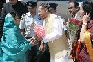 The President of India, Smt Pratibha Devisingh Patil being welcomed by the Governor of Andhra Pradesh, Shri E S L Narasimhan at Puttaparthi Airport in Andhra Pradesh on Nov 19, 2010
