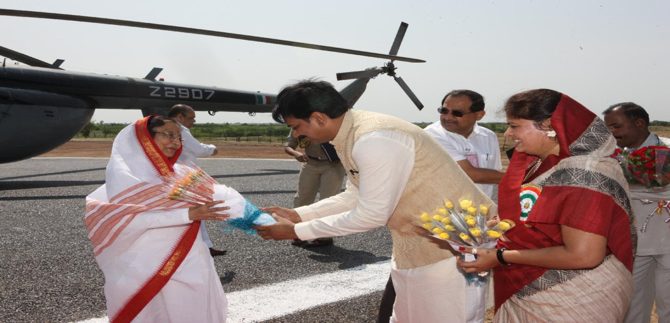 The President of India, Smt Pratibha Devisingh Patil arriving at Indapur Helipad in Maharashtra on Oct 12, 2010