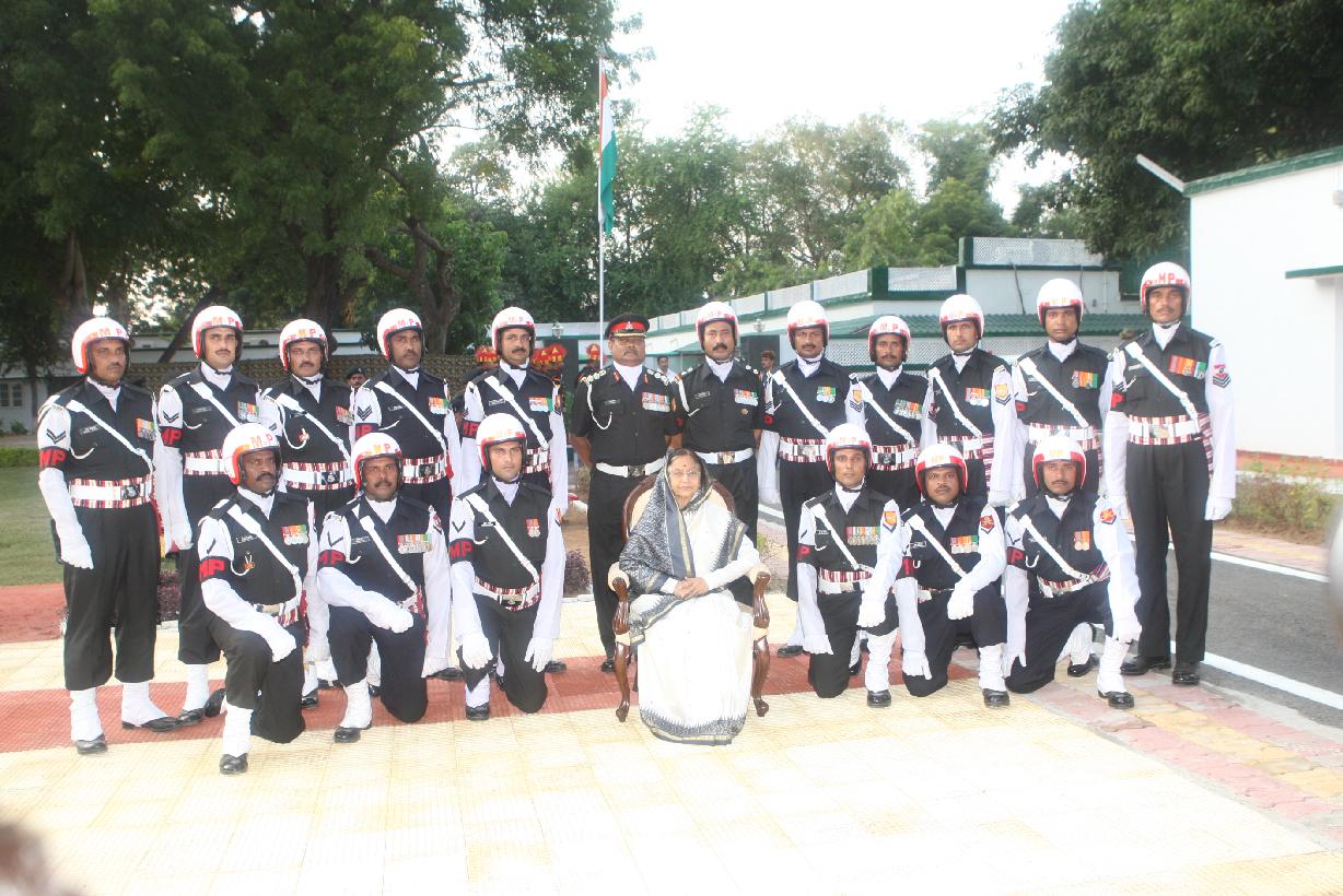 The President of India, Smt Pratibha Devisingh Patil posing for a Group Photographs with 27 Armored Brigade at Guest Room of Babina in Uttar Pradesh on Oct 19, 2010