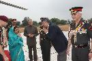 The President of India, Smt Pratibha Devisingh Patil being welcomed by the Governor of Uttar Pradesh, Shri Banwari Lal Joshi at Babina Helipad in Uttar Pradesh on Oct 19, 2010
