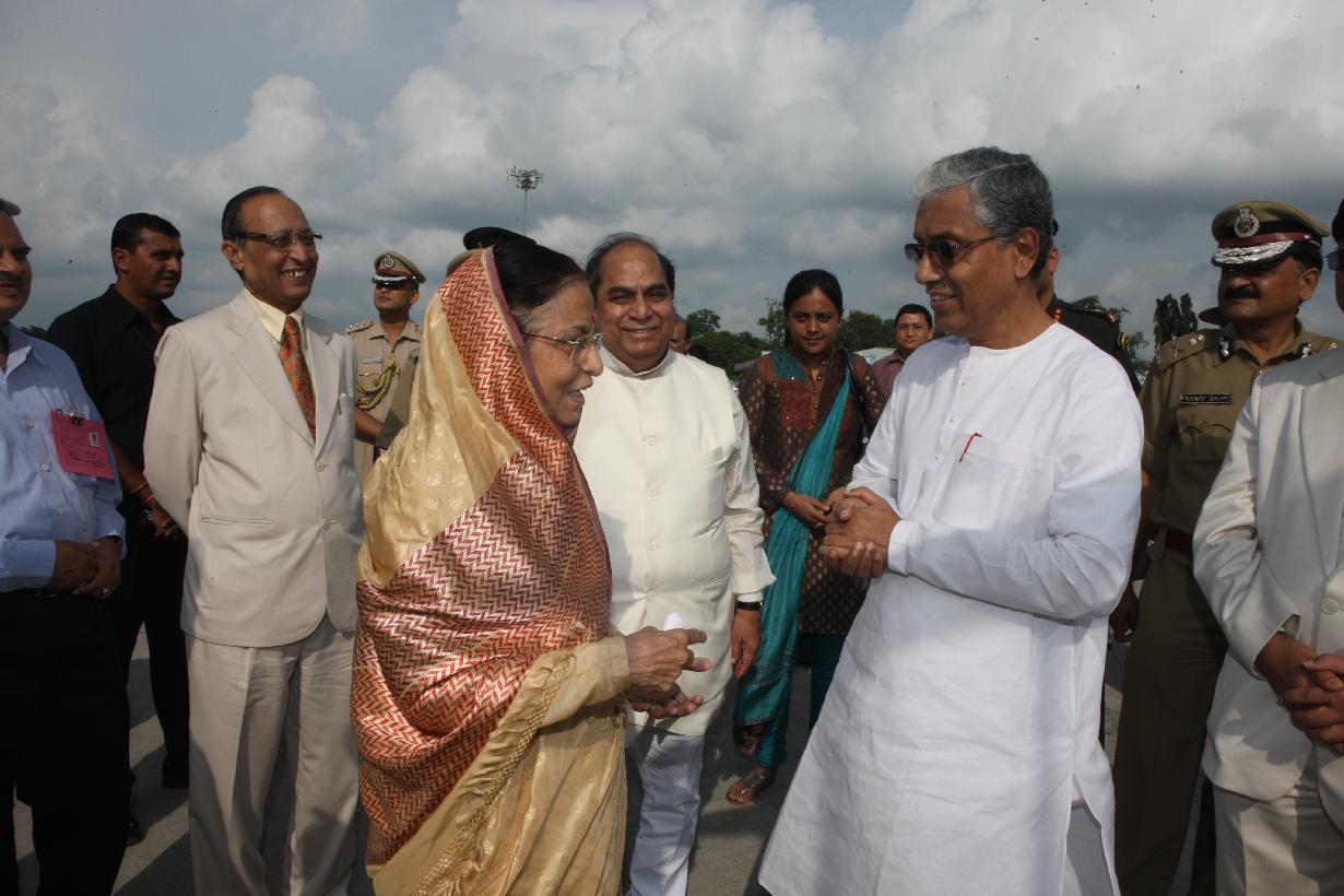 The President of India, Smt Pratibha Devisingh Patil before departure from Agartala Airport in Tripura on Sep 25, 2010