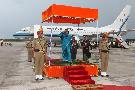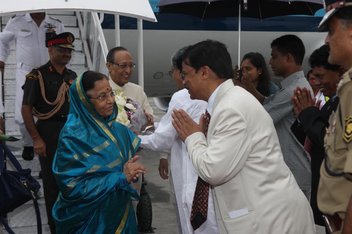 The President of India, Smt Pratibha Devisingh Patil arriving at Lengpui Helipad in Mizoram on Sep 24, 2010