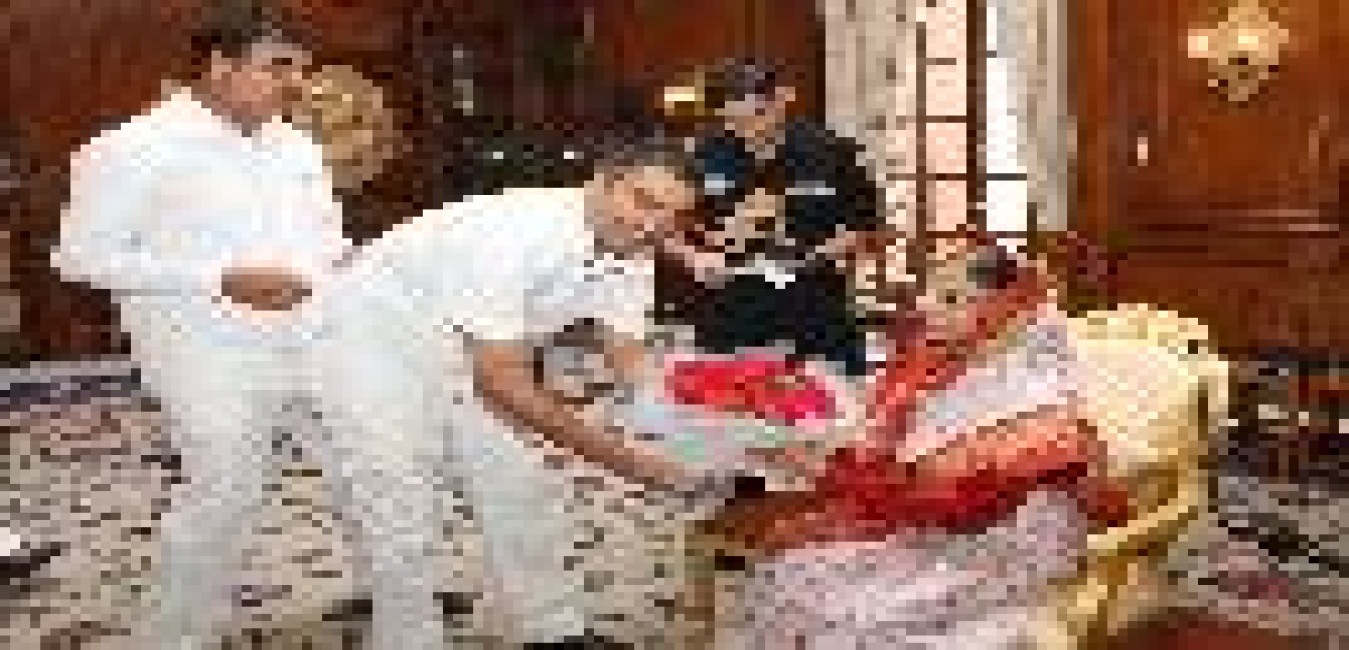The President of India, Smt Pratibha Devisingh Patil interacting with the Vice President of India, Mohammad Hamid Ansari and the Prime Minister of India, Dr Manmohan Singh before her Ceremonial departure for her State Visits to Laos and Cambodia at Rashtrapati Bhavan in New Delhi on Sep 09, 2010