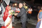 The President of India, Smt Pratibha Devisingh Patil being welcomed by the Governor of West Bengal, Shri M K Narayanan and Chief Minister of West Bengal, Shri Buddhadeb Bhattacharjee at Kolkata Airport in West Bengal on Sep 21, 2010
