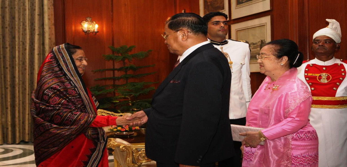 The Chairman of the State Peace and Development Council of the Union of Myanmar Senior General, HE Mr Than Shwe calling on the President of India, Smt Pratibha Devisingh Patil at Rashtrapati Bhavan in New Delhi on June 27, 2010