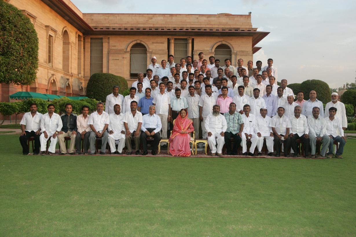 The President of India, Smt Pratibha Devisingh Patil interacting with Dr Arvind Govindrao Malpe and others at Rashtrapati Bhavan in New Delhi on Aug 09, 2010