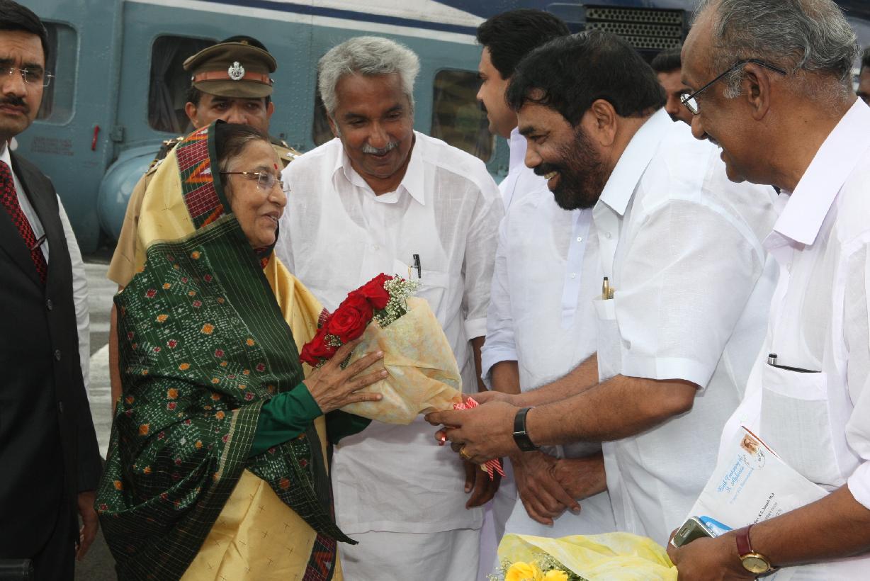 The President of India, Smt Pratibha Devisingh Patil arriving at Kottayam Helipad in Kochi, Kerala on Aug 12, 2010