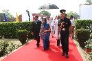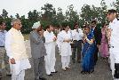 The President of India, Smt Pratibha Devisingh Patil being welcomed by Governor of Haryana, Shri Jagannath Pahadia and Chief Minister, Shri Bhupinder Singh Hooda at Karnal Helipad in Haryana on July 24, 2010