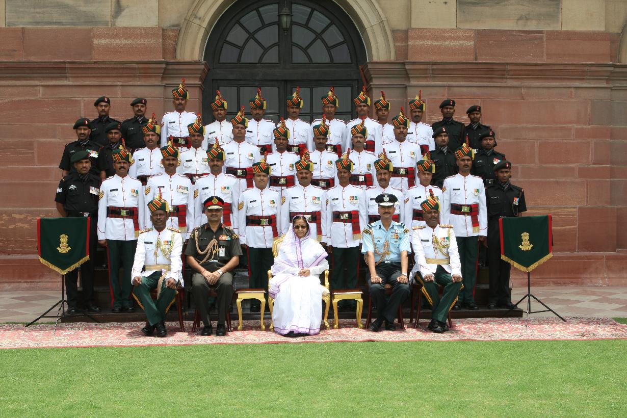 The President of India, Smt Pratibha Devisingh Patil posing for a Group Photograph with Bihar Regimental Band at Rashtrapati Bhavan in New Delhi on June 28, 2010