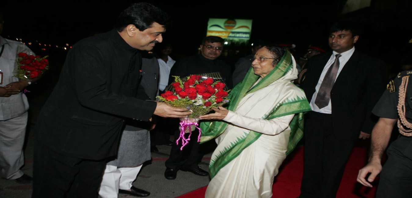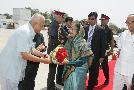 The President of India, Smt Pratibha Devisingh Patil being welcomed by the Governor of Maharashtra, Shri K Sankaranarayanan at Chhatrapati Shivaji International Airport in Mumbai, Maharashtra April 17, 2010