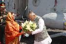 The President of India, Smt Pratibha Devisingh Patil being welcomed by the Governor of Rajasthan, Smt Prabha Rau at Bikaner Airport in Rajasthan on Feb 28, 2010