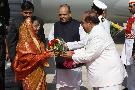 The President of India, Smt Pratibha Devisingh Patil being welcomed by the Governor of Maharashtra, Shri Kateekal Sankaranarayanan at Pune Airport in Maharashtra on Feb 27, 2010