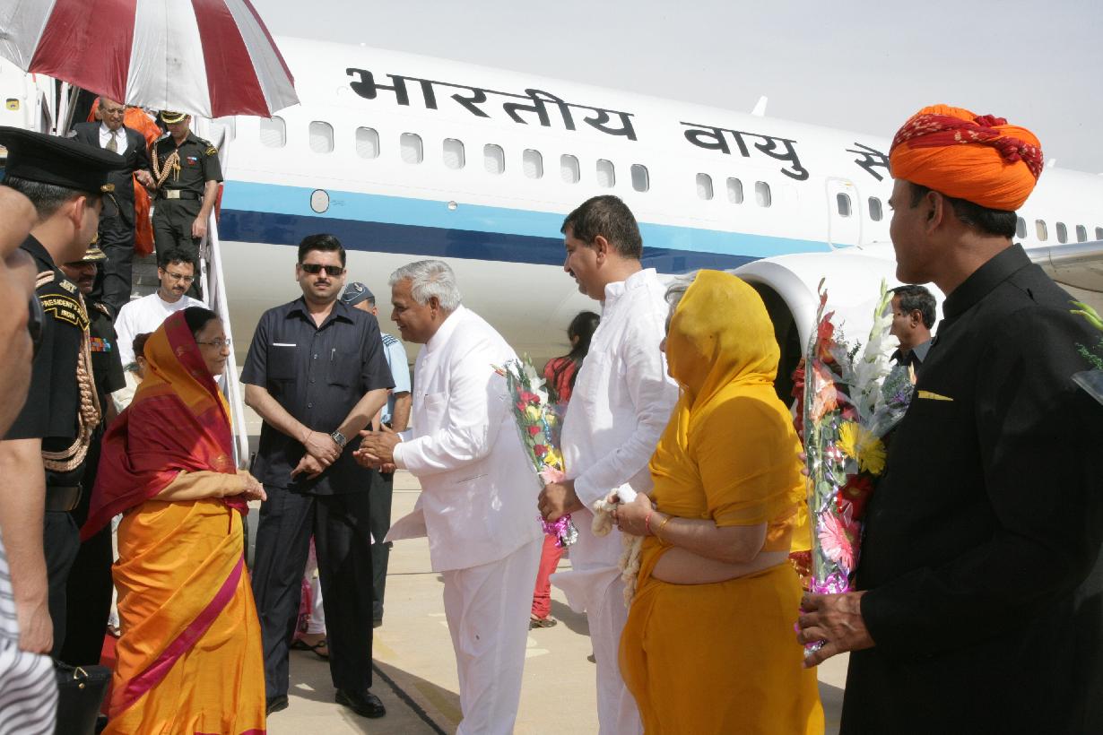 The President of India, Smt Pratibha Devisingh Patil during arrival at Jaisalmer Airport in Rajasthan on Feb 28, 2010