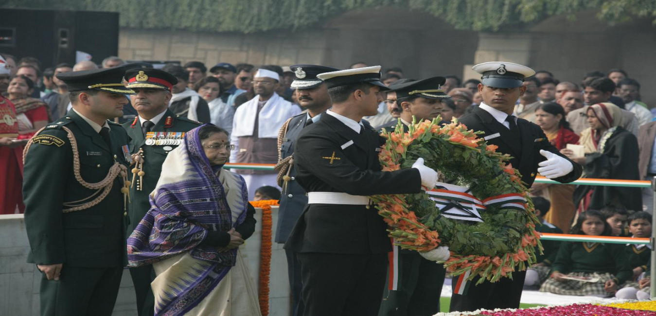 The President of India, Smt Pratibha Devisingh Patil paying homage at the Samadhi of Mahatma Gandhi on the occasion of his Martyrdom Day at Rajghat in New Delhi on Jan 30, 2010