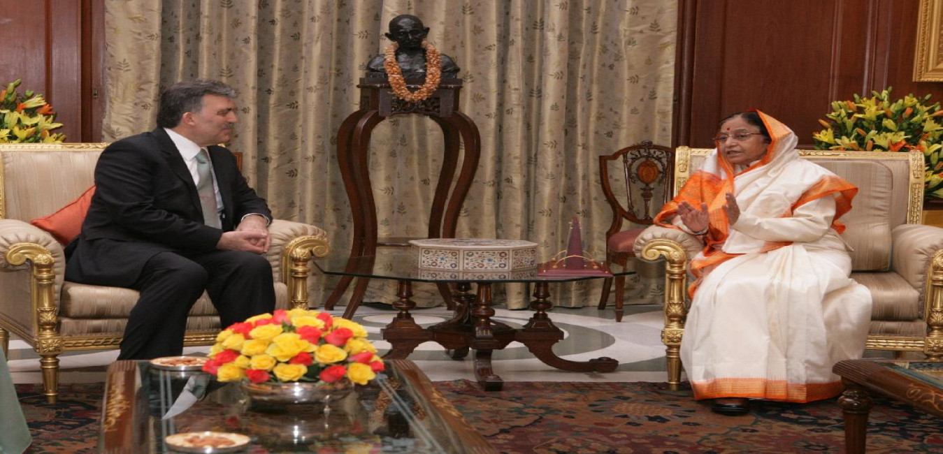 The President of Turkey, HE Mr Abdullah Gul calling on the President of India, Smt Pratibha Devisingh Patil at Rashtrapati Bhavan in New Delhi on Feb 09, 2010