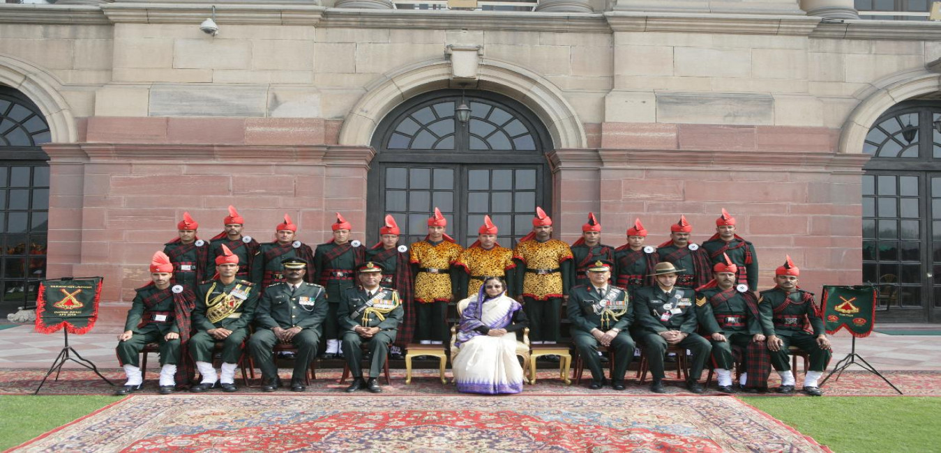 The President of India, Smt Pratibha Devisingh Patil posing for a Group Photographs with Tri Service Band Contingents at Rashtrapati Bhavan in New Delhi on Jan 30, 2010