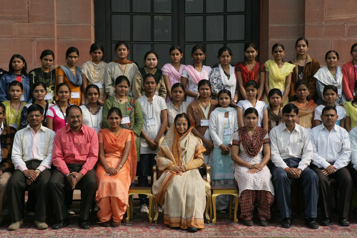 The President of India, Smt Pratibha Devisingh Patil posing for a Group Photograph with Student of Dr Annasaheb GD Bendale College from Jalgaon at Rashtrapati Bhavan in New Delhi on Feb 01, 2010