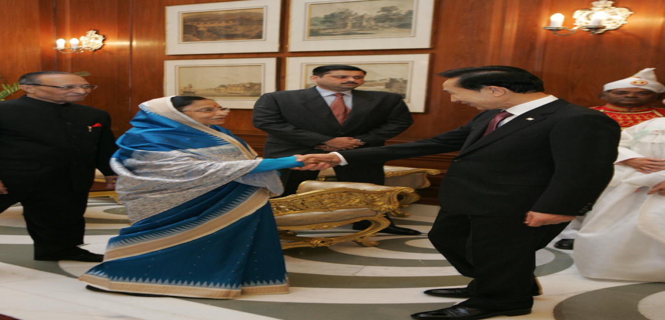 The President of the Republic of Korea, HE Mr Lee Myung-bak calling on the President of India, Smt Pratibha Devisingh Patil at Rashtrapati Bhavan in New Delhi on Jan 25, 2010