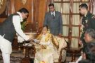 The President of India, Smt Pratibha Devisingh Patil pinning the Rank to JCO ADC V A Baral at Rashtrapati Bhavan in New Delhi on Jan 27, 2010