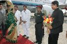 The President of India, Smt Pratibha Devisingh Patil being welcomed by the Governor of Lakshadweep, J K Dadoo at Agatti Helipad in Lakshadweep on Dec 27, 2009