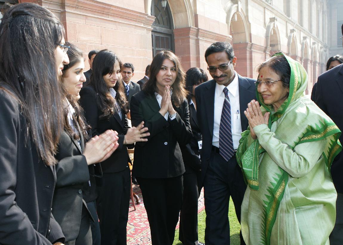 The President of India, Smt Pratibha Devisingh Patil meeting students from the Government Law College of Mumbai Currently on a Study visit to New Delhi at Rashtrapati Bhavan in New Delhi on Dec 11, 2009
