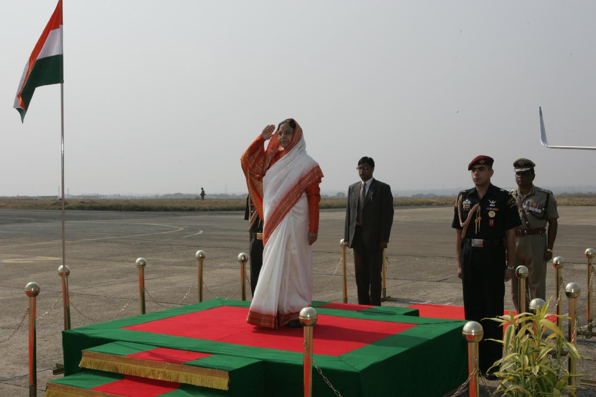 The President of India, Smt Pratibha Devisingh Patil before departure from Bhubaneswar Airport in Odisha on Dec 10, 2009