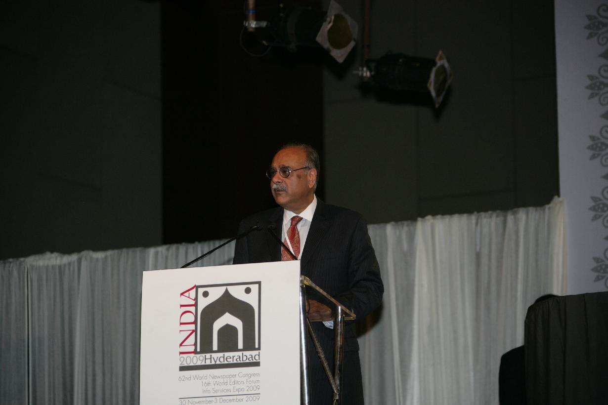 The President of India, Smt Pratibha Devisingh Patil during a Joint Session of the 62nd World Newspaper Congress and the 16th World Editors Forum at Hyderabad in Andhra Pradesh on Dec 01, 2009
