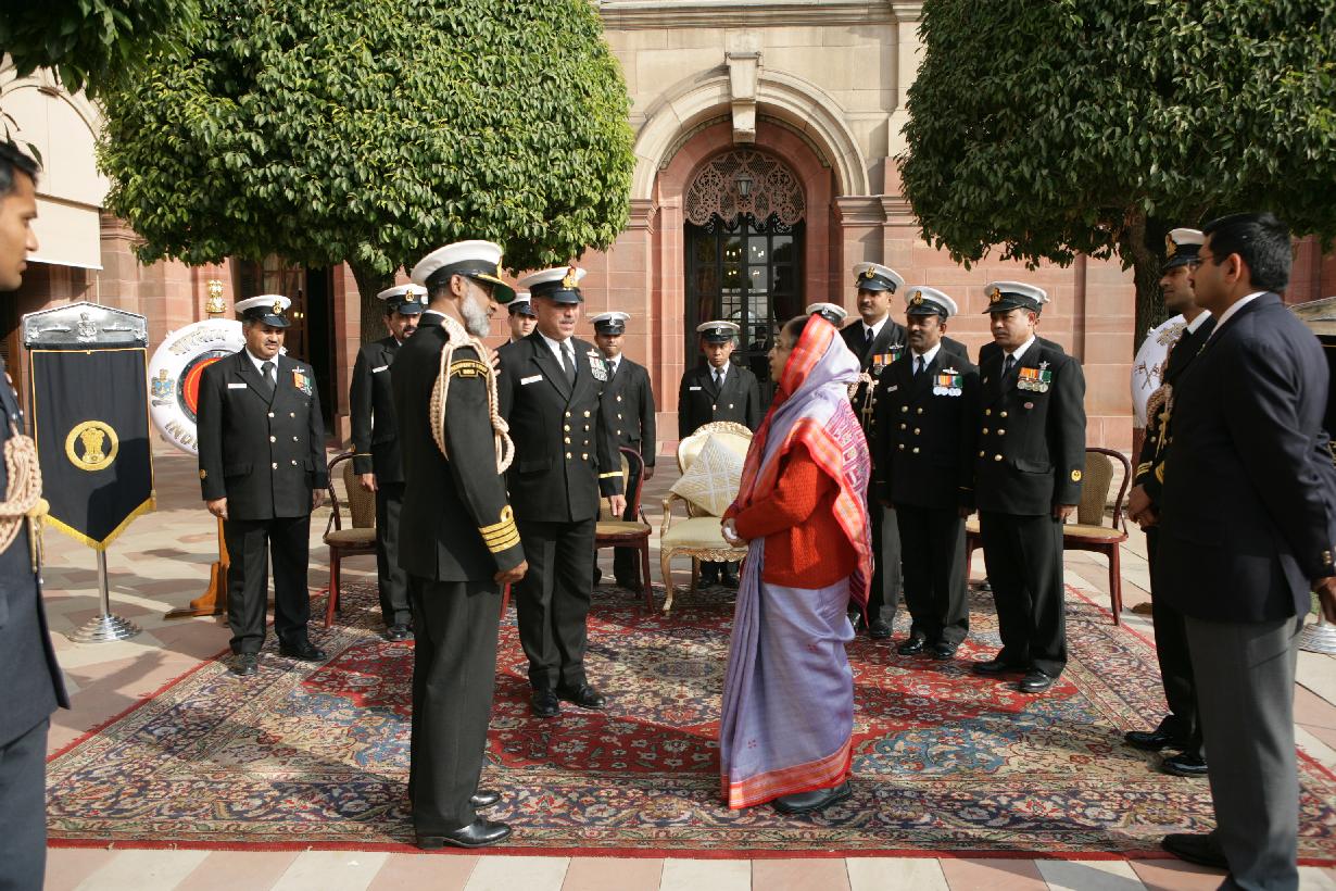 The President of India, Smt Pratibha Devisingh Patil during 'At Home' Hosted by Chief of the Naval Staff of Indian Navy, Admiral Nirmal Kumar Verma on the occasion of Navy Day at Navy House in New Delhi on Dec 04, 2009