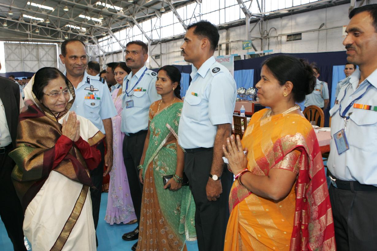 The President of India, Smt Pratibha Devisingh Patil interacting with Air Warriors during at Air Force Station of Pune in Maharashtra on Nov 25, 2009