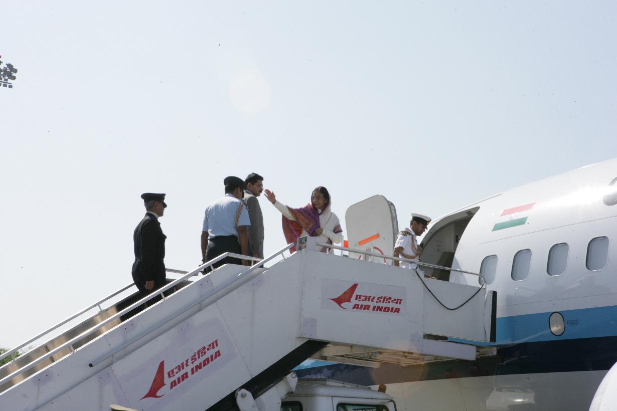 The President of India, Smt Pratibha Devisingh Patil before departure from Pune Airport in Maharashtra on Nov 26, 2009